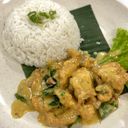 Tender chicken in a rich, creamy sauce served over fluffy rice.