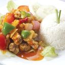 Crispy chicken tossed in tangy sweet and sour sauce, served over fragrant jasmine rice.