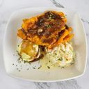 Breaded chicken grilled to perfection, served with fries, coleslaw and black pepper sauce