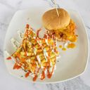 Breaded chicken fried to perfection, served in a bun with shredded vegetables and sauces