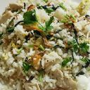 Stir-fried rice cooked with prawns, squid & chicken