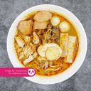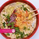Fragrant rice noodles in a rich, spiced coconut curry, topped with fresh herbs and vegetables.