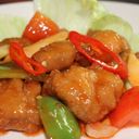 Crispy chicken tossed in tangy sweet and sour sauce, served with vibrant vegetables and rice.