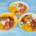 Steamed rice served with spiced catfish, accompanied by aromatic herbs and zesty sauces.