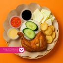 Nasi, ayam bumbu, kobis timun, keropok, sambal, kicap & tauhu tempe