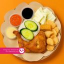 Nasi, ayam bumbu, kobis timun, keropok, sambal & kicap