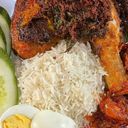 Deep fried marinated beef topped with carrots, long beans, cauliflower and sliced red chillies. Served with fluffy aromatic rice in coconut milk, spicy sambal, boiled egg and sliced cucumber
