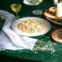 Rich sauce made of olive oil, egg, beef bacon and parmesan whipped with pasta of your choice