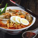 Savory noodles in rich, aromatic broth, topped with fresh vegetables and tender protein options.