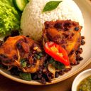 Ayam goreng berempah dengan aroma daun segar, lengkap dengan nasi putih beras wangi, sup kosong, sambal hijau istimewa Dapur Wanchu & sayuran. Menu signature Dapur Wanchu.