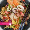 Thai instant noodles cooked with fresh crab sticks, fishballs, prawns, coriander, fish sauce, chillies and salad leaves