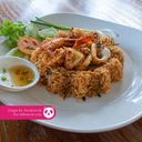 Flat rice noodles topped with hot, spicy & sour fish tom yam soup, chicken or fresh seafood & vegetables