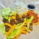 Stir-fried rice noodles with beef in a savory sauce. For reference only.