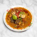 Kuah mee rebus pedas. Dulu manis-manis pedas manja. Sekarang ni pedas semata.