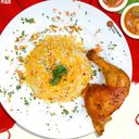 Juicy chicken cooked with tomatoes, spices, and vegetables served atop seasoned rice, hearty, flavorful, and satisfying.