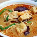 For ref only: vermicelli noodles topped with thick curry gravy filled with chicken, fish balls, bean sprouts, brinjals, fresh cockles & dried tofu