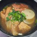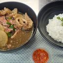 with beef briskets, beef tripes, beef tendons and white radish (lobak putih).