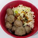 Traditional Indonesian dish: meatballs in flavorful broth with noodles, veggies, and aromatic spices.