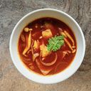 For ref only: Tomyam Seafood is a spicy Thai soup featuring a flavorful broth with a mix of seafood, herbs, and chili.