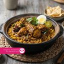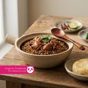 Hot claypot rice served with rich, spicy chicken curry -fragrant, comforting,and full of bold flavou