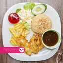 Fragrant fried rice topped with succulent chicken chop, served with fresh vegetables and spicy sambal.