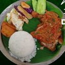 Crispy tilapia served with spicy sambal, fresh vegetables, and fragrant rice for a delightful meal.