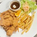 Juicy chicken fillet topped with melted cheese, served with a side of savory dipping sauce.