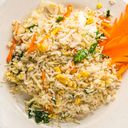 Stir-fried rice with egg, peas, carrots seasoned with oyster sauce