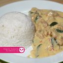 Steamed white rice served with tender chicken in a creamy buttermilk sauce