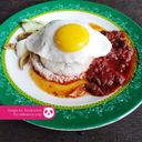 For ref only: fried egg with fragrant rice cooked in coconut milk & pandan leaf. Served with fried anchovies & spicy sambal