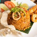 Spicy, aromatic fried rice with fresh seafood, herbs, and a zesty Tom Yum flavor.