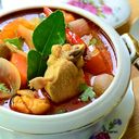 Terdapat campuran pelbagai jenis makanan laut bersama campuran isi ayam.