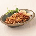 "Stir-fried pork slices in savory yakiniku apple sauce, topped with apple slices. Come with 1 rice, 2 side dishes."