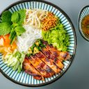 Savory grilled lemongrass chicken served over delicate dry vermicelli, bursting with aromatic flavors.