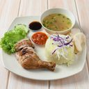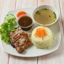 Aromatic rice cooked with chicken stock and served with roasted chicken, chili sauce, soy sauce, soup and sliced cucumbers