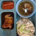 Nasi Lembik Isi ayam tasteless Sup kosong timun banjir takda salad Sambal failed cuka satu lori.