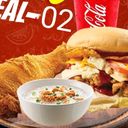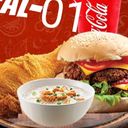 1 Heritage burger, 1 pc fried chicken, 1 small bubur ayam & 1 carbonated beverage