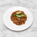Fried noodles topped with a perfectly cooked sunny-side-up egg and savory seasonings.