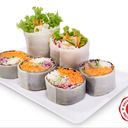 Hand Rolled Rice Skin Sushi with Seaweed & Veggies dipped with Sour Sushi Sauce