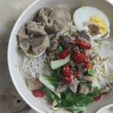 Traditional Indonesian dish: meatballs in flavorful broth with noodles, veggies, and aromatic spices