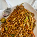 Stir-fried rice noodles with vegetables, eggs, and savory spices.