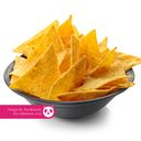Crispy tortilla chips topped with savory cheese and zesty toppings. For reference only.