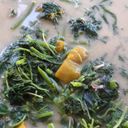 A vibrant mix of spinach and pumpkin simmered in a rich, creamy coconut sauce.