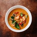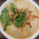 Noodles with sliced chicken in a savory sauce. For reference only.