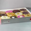 A delightful assortment of 12 freshly baked donuts, perfect for sharing or indulging in a sweet treat anytime.