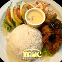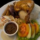 Tender poached chicken served with fragrant rice, ginger sauce, and chili paste.