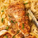 0Spicy Alfredo Pasta with Crispy Chicken Chop