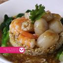Steamed rice topped with light and savoury egg gravy with seafood and vegetables