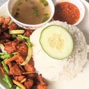 Nasi Putih, Ayam Kicap berlada, sambal belacan & sup.