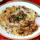 Fragrant basmati rice layered with tender mutton, aromatic spices, and garnished with fresh herbs.